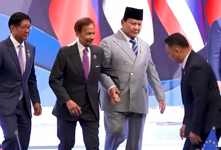 Kuala Lumpur, Indeks News – Momen menarik terjadi di sela-sela Konferensi Tingkat Tinggi (KTT) ke-47 ASEAN di Kuala Lumpur Convention Centre (KLCC), Malaysia. Presiden Prabowo Subianto tampak gandeng Sultan Brunei Darussalam, Hassanal Bolkiah, saat menuruni tangga panggung usai sesi foto bersama para pemimpin negara ASEAN.