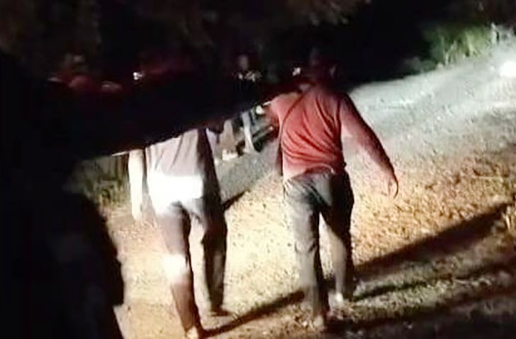 Jenazah kemudian dibawa menggunakan ambulans sampai Desa Taan sebelum ditandu kembali menuju Desa Bela dengan waktu perjalanan sekitar tiga jam.