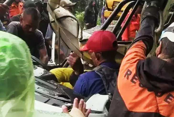 Petugas gabungan dari Polri, TNI, BPBD, dan Damkar Kabupaten Subang bersama warga setempat langsung melakukan evakuasi.