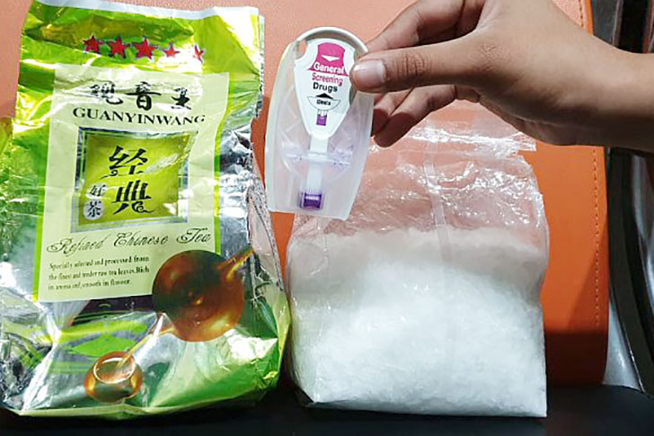 Barang haram tersebut disimpan dalam plastik teh Cina berwarna hijau dan berbagai perlengkapan lain yang digunakan untuk pengemasan.