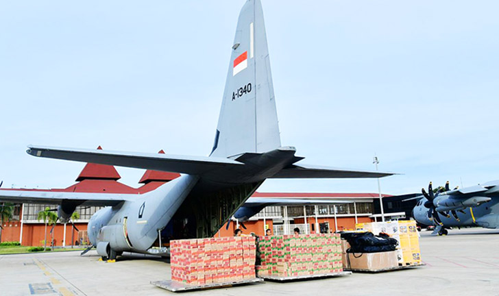 Ia mengungkapkan bahwa pemerintah telah mengirimkan tiga pesawat Hercules C-130 dan satu pesawat A-400 sejak Jumat pagi untuk memperkuat distribusi logistik dan bantuan darurat.