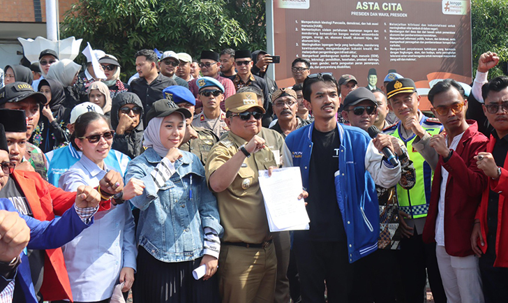 Peristiwa yang cukupmemelukan itu terjadi di tengah teriknya siang, ratusan mahasiswa duduk berbaris rapi. Mereka menyampaikan aspirasi dengan tertib, hingga tiba giliran sang bupati naik ke podium.