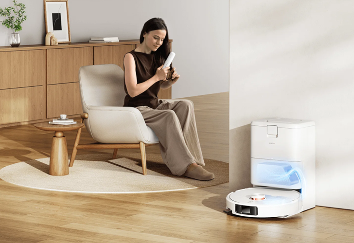 - All-in-one base station yang dapat mencuci dan mengeringkan mop secara otomatis, sekaligus mengosongkan debu.